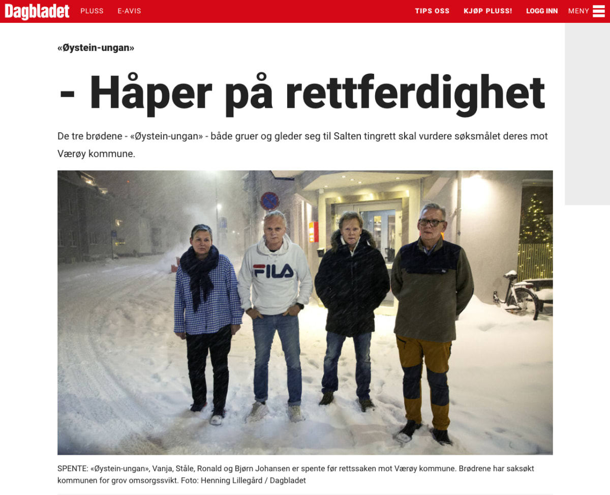 Tre brødre krever erstatning fra Værøy kommune for grov omsorgssvikt.